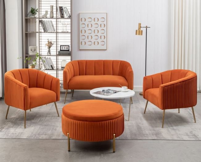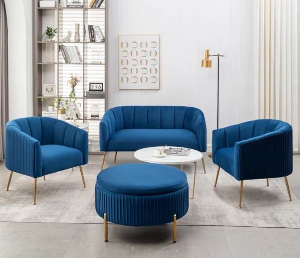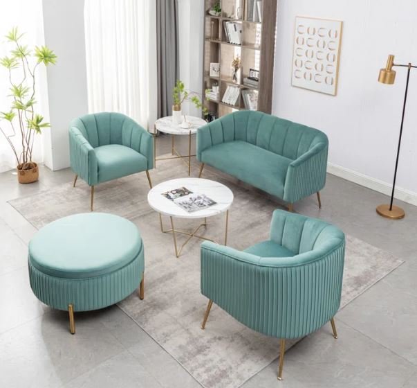 Plush Velvet Sofa Set with Gold Legs – Modern Luxury Living Collection